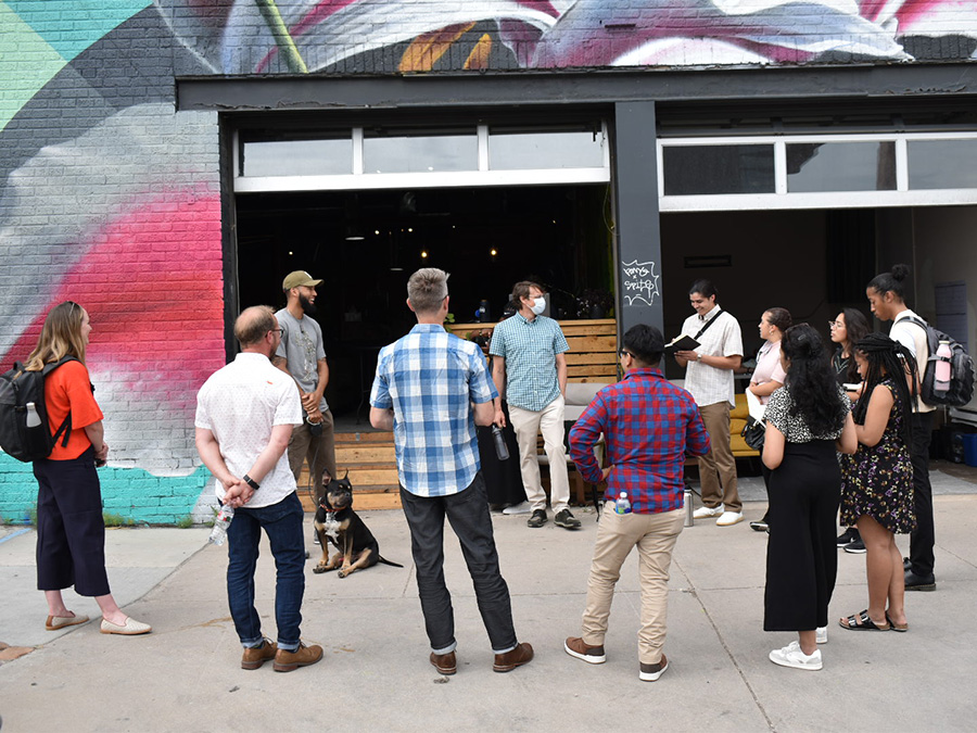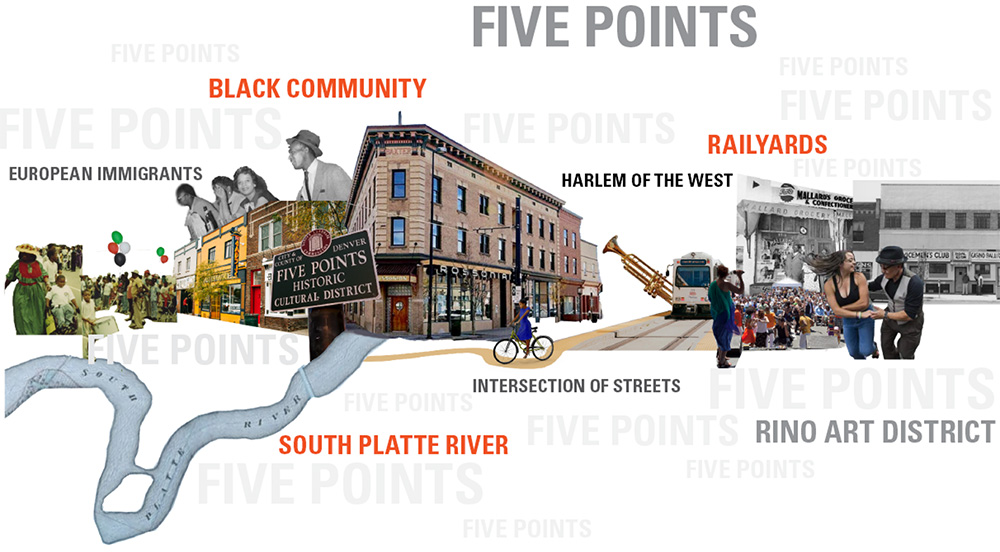 This year, our seven interns were asked to create a green infrastructure toolkit to support future community engagement and visioning for Denver’s Five Points neighborhood, one of the oldest and ethnically diverse neighborhoods in the city. Throughout the project the team worked directly with the client, the Green Dot Coalition, made up of the National Wildlife Federation, Greenspaces, Lincoln Hills Cares, Urban Sanctuary, and the Heart of Five Points The group kicked off the project together in Denver by visiting the area, meeting with the client groups, and learning more about the history and context of the neighborhood. Serving as a cultural hub in Denver for generations, the neighborhood has experienced a transformation from an industrial zone to dense residential with in the last 20 years. The area, not originally intended for human use, has a severe lack of trees and vegetation which exacerbates the urban heat island effect while leaving the area susceptible to flooding.