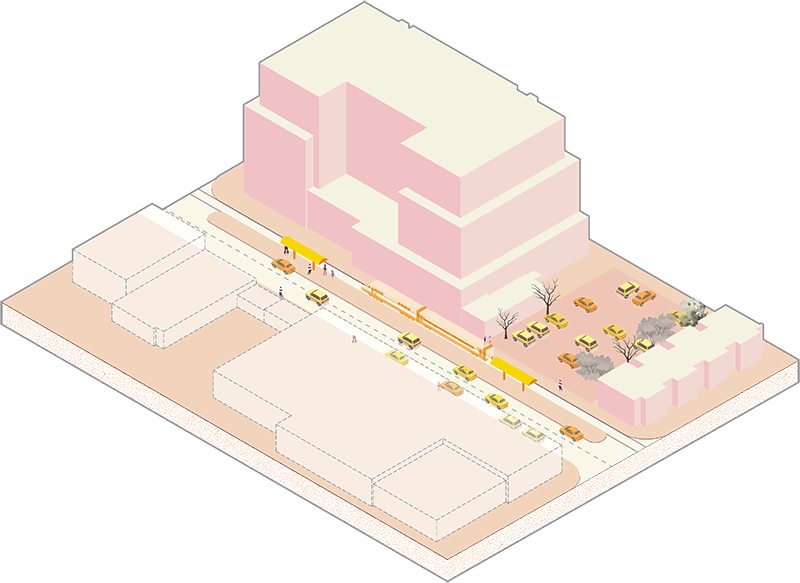 Based on the identified priority areas, the team selected specific major and minor roads and created prototype typologies for streetscapes, parking lots, and commercial frontages that identify improvements to the tree canopy and infrastructure. These changes help reduce the heat island effect, add green spaces, and promote pedestrian and bicycle safety.