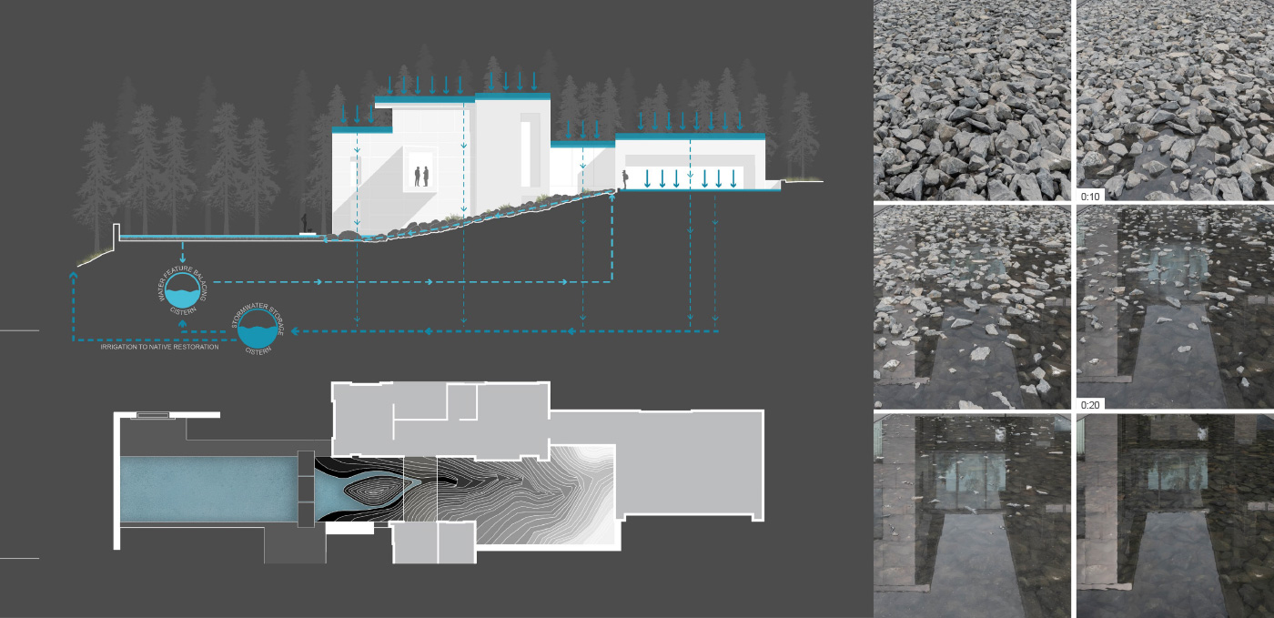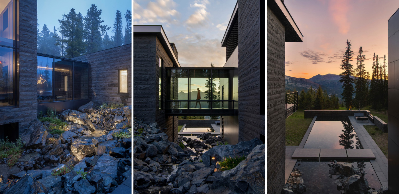 Set within a landscape shaped by wind, fire, water and ice, Andesite Ridge exposes a dramatic and ecologically rich environment, challenging the notion of contemporary design in a rugged context. A modernist interpretation of mountain living melds a design ethos of simplicity, volume, and natural materials with an artful synthesis of engineering and technology to holistically address its contextual suitability. This approach, when synthesized with strategic site planning decisions, effectively dissolves the barrier between designed space and natural environment while actively addressing urgent regional issues including forestry and wildfire management, water conservation, ecological impact, and wildlife habitat restoration.
