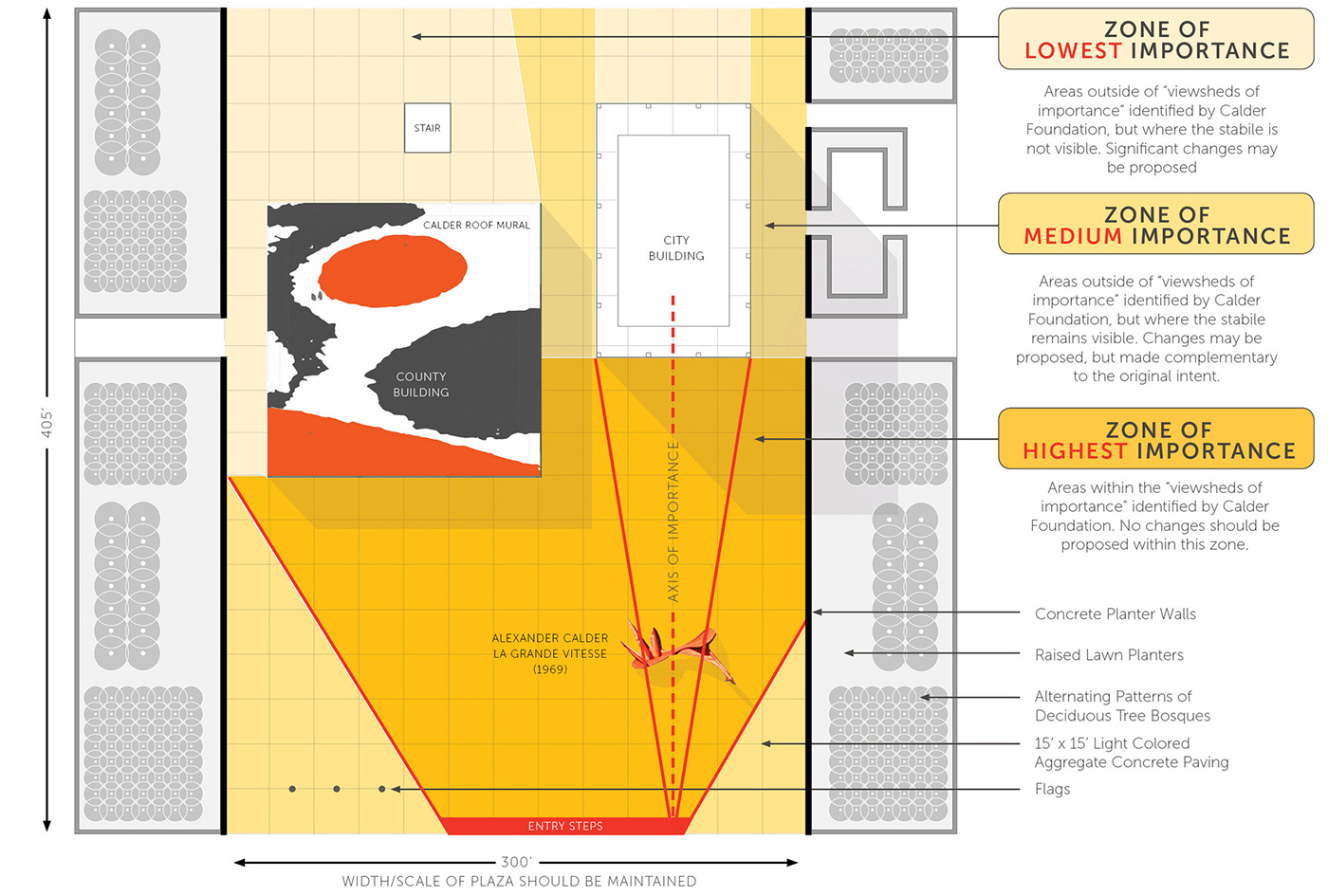 The profession and medium of landscape architecture are increasingly faced with the dilemma of how to maintain the delicate balance between historic preservation and contemporary adaption. Calder Plaza embodies a community-led initiative and endorsed result grounded in research-based methodologies which represents a national model for the design professions, community advocates, and city officials navigating urban landscapes at critical periods of change.