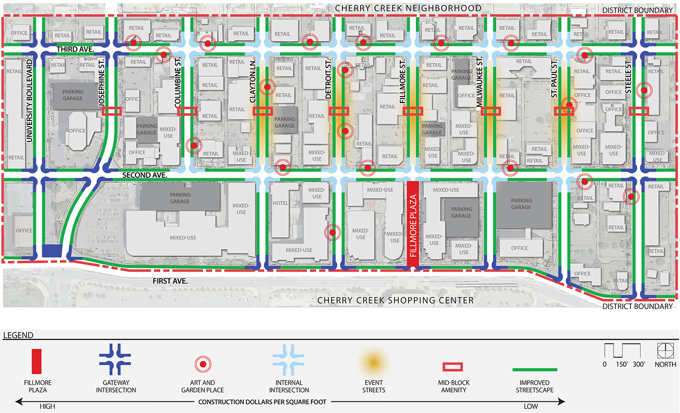 Cherry Creek North, a 16-block retail and arts district, was struggling to make profits due to high maintenance costs, deteriorating infrastructure, tired aesthetics and fierce competition from newer outdoor retail environments. Working with a Business Improvement District, a design for revitalizing the streetscapes, pocket parks and Fillmore Plaza, the project’s centerpiece, has improved the look of the outdoors, increasing the time that people spend shopping, eating and strolling. The physical changes, equitable to all businesses and owners, has led to a 16 percent increase in retail sales tax for the District within a few years of all improvements being installed. Today, Cherry Creek North has seen a wave of private investment in new housing, retail, office and hospitality space, making the District a major attraction and regional juggernaut.