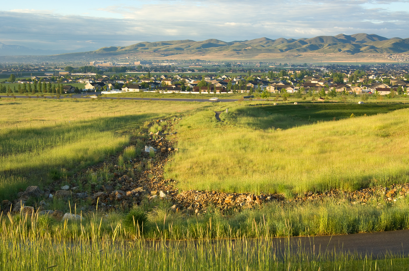 The community engineers estimate that over $70M in storm water infrastructure savings have been realized over the life of the project, due to a reduction in impact fees. The project also dramatically reduced the conventional conveyance infrastructure by using open, vegetated drainage channels that help clean and store water. The extensive green infrastructure system, which has enabled every home to be within a five-minute walk of a trail, has resulted in over 70% of children being able to safely walk to school, compared to less than 20% in nearby communities. Daybreak has become a model for performance-based design, which is exemplified in many accolades, including the Best Community of the Year Award.