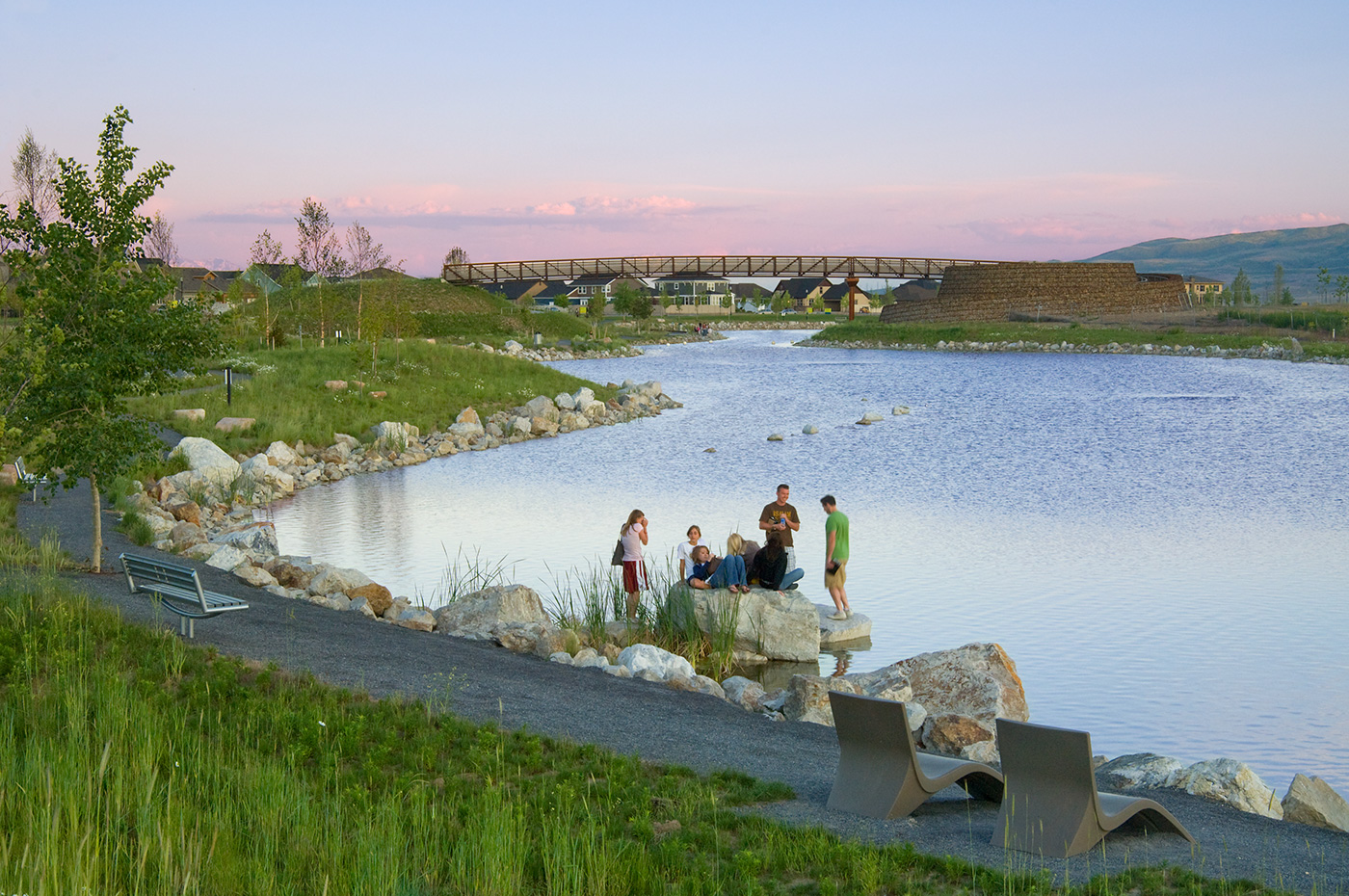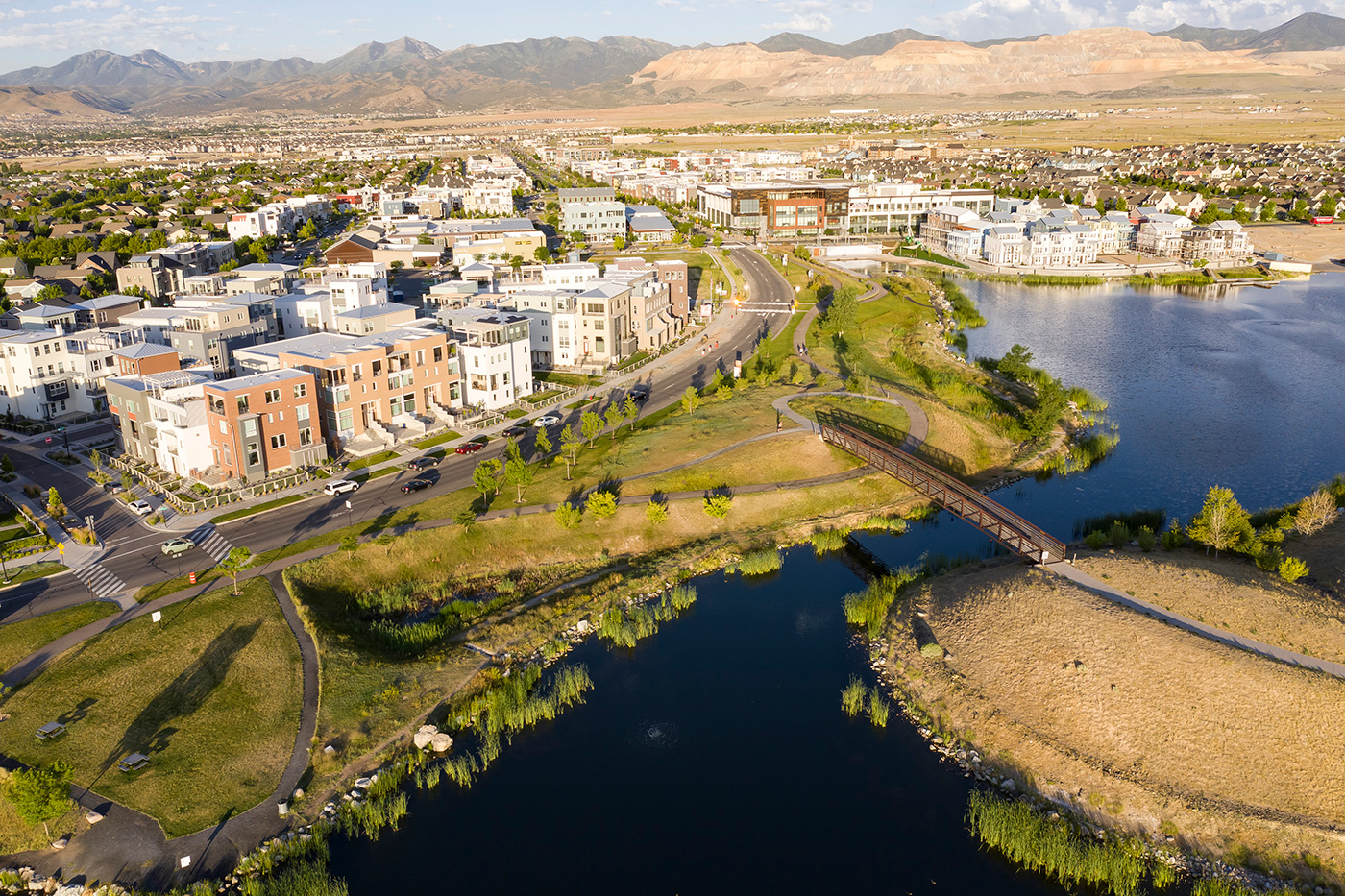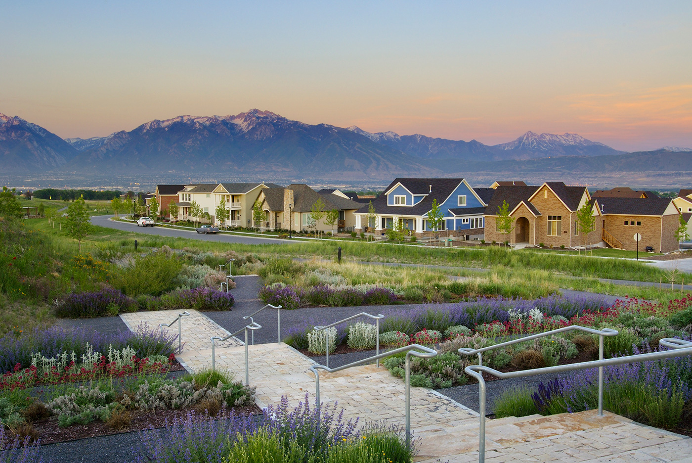 Daybreak is a new community, sited on 4,100-acres of surplus mining land. The project includes over 20,000 residential units, approximately 9.1 million sf of commercial space and an extensive parks and open space system that integrates stormwater management, water conservation, habitat creation and local food production.