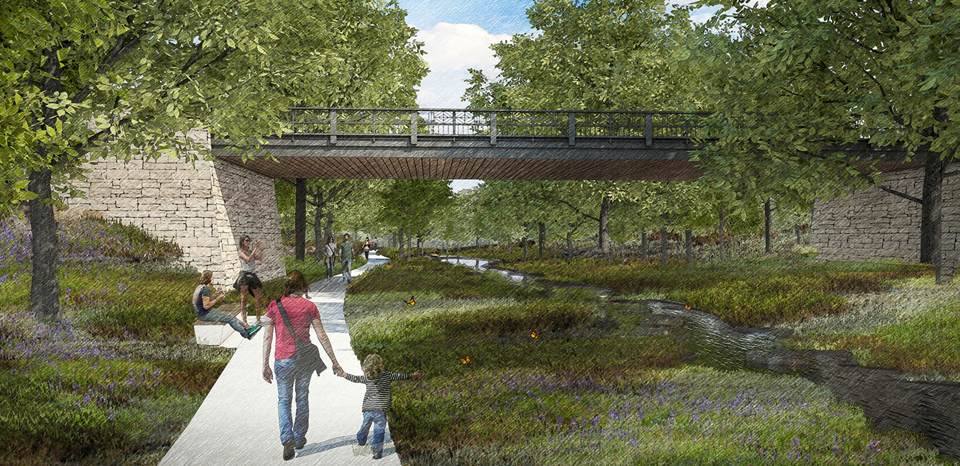 The Envision Shooks Run Corridor Master Plan began as an incremental infrastructure replacement and stormwater drainage project along an abandoned four-mile stream corridor. Under the leadership of an innovative and community-focused team and a grassroots public movement, it became a significant investment in the city’s future, integrating infrastructure, sustainability, economic development and a greenway corridor plan that will complete the Legacy Loop, an approximately 10-mile trail, park and recreation loop that encircles downtown. The re-imagined Shooks Run Corridor will provide multi-modal transportation options, a diversity of land uses and economic development approaches to influence future private and public partnerships in the heart of Colorado Springs.
