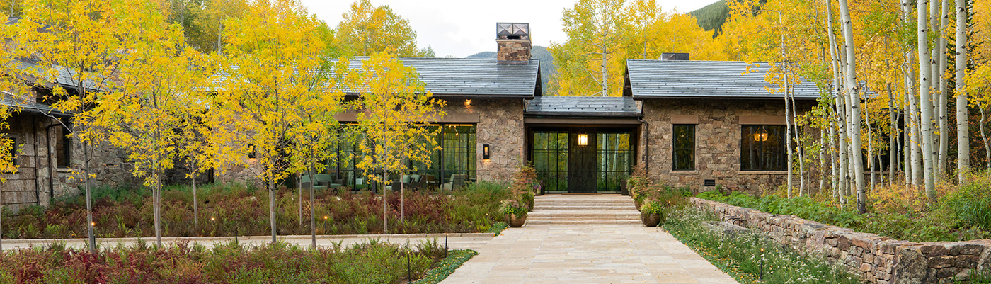 Highlands Retreat is an endearing family refuge set within the protective canopy of a mature aspen forest. Surrounded by red sandstone cliffs and steep, rugged slopes, the landscape architect’s sensitive site planning and design was highly influenced by the property’s seasonal changes, filtered sunlight, and existing natural systems. A diverse and complex ecosystem of rich, organic soils teeming with grasses, forbs, and wildflowers sets the stage for a carefully crafted and environmentally sensitive design, one that proffers both a sense of adventure and peace to the owners and their guests.