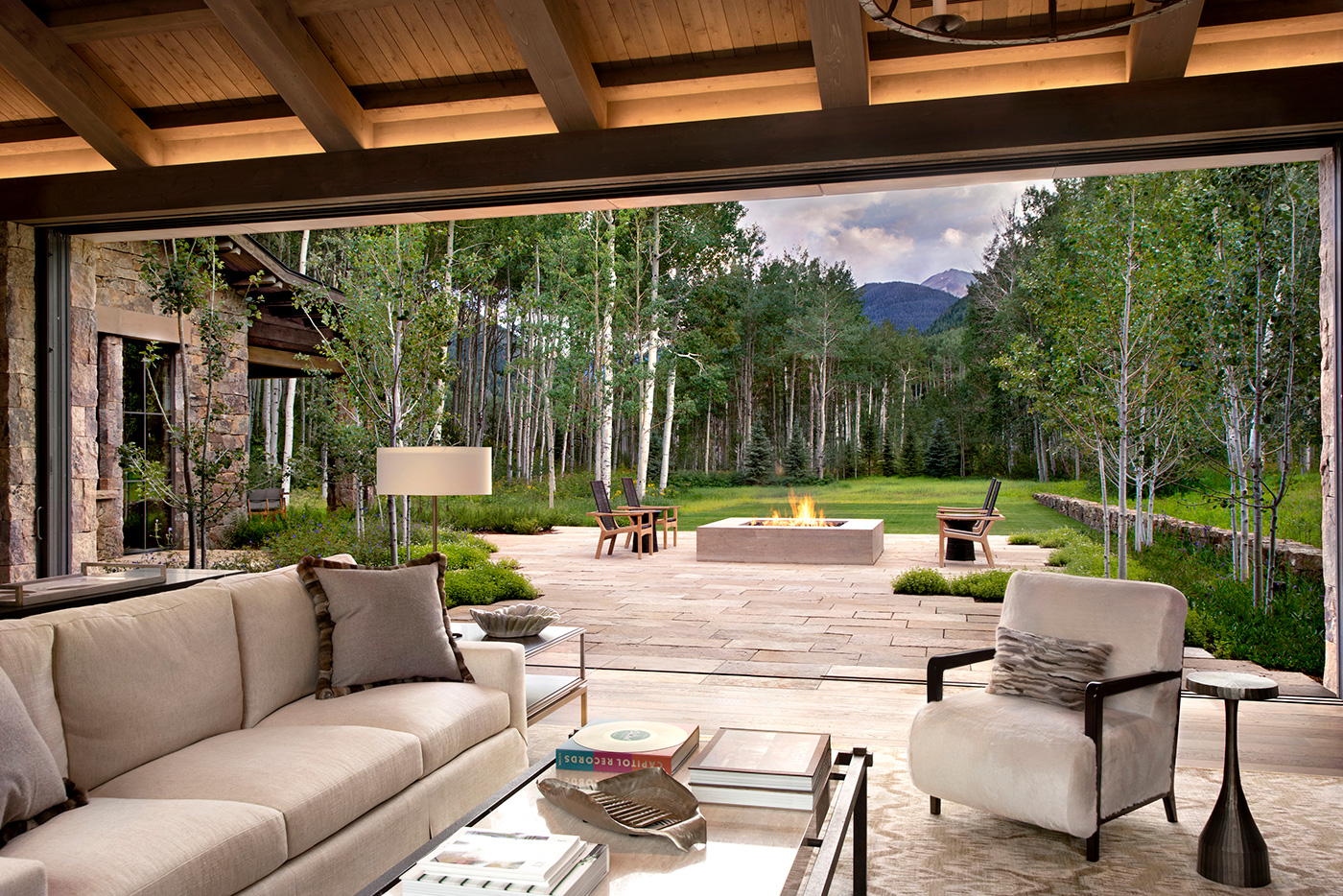 Inherent in the design is the cultivation of a very simple yet sophisticated indoor-outdoor living experience for the family and their guests. A collaborative effort combining the creative talents of the landscape architect and architect, the home presents a refreshing vision of mountain architecture, one that engages the landscape in a manner that respects the natural history and cultural heritage of the surrounding environment. Outdoor spaces weave into the forest and wildflower meadows, giving the home a sense of permanence and enduring character. Modern interpretations of form and material combined with intentional additions of traditional elements imbue the home with a warm and welcoming sense of calm.