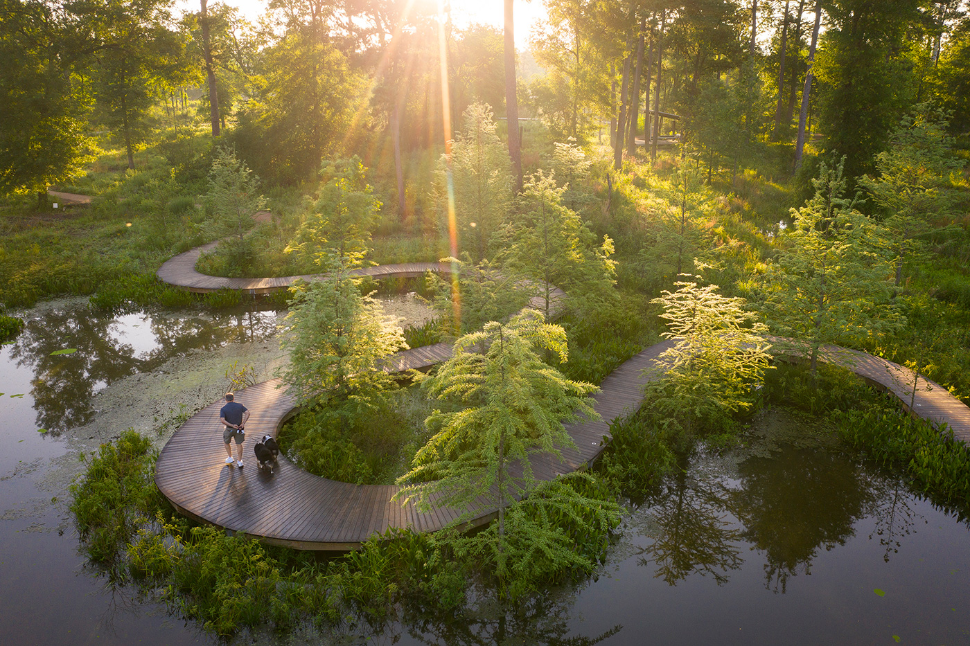 Houston and the adjacent Gulf Coast area were hit with two extreme weather events over 36 months. In 2008, the area was struck by Hurricane Ike, and in 2011, Texas recorded its worst drought on record. The 155-acre Houston Arboretum and Nature Center (HANC) was hit hard and lost many mature trees. The Design Workshop team discovered that the underlying soil was much more conducive to supporting native prairie than woodland, so the new master plan called for restoring indigenous grasses more tolerant of weather extremes. HANC is now a resilient landscape, a refuge for native plants and animals, and a model for other regions facing similar environmental threats.