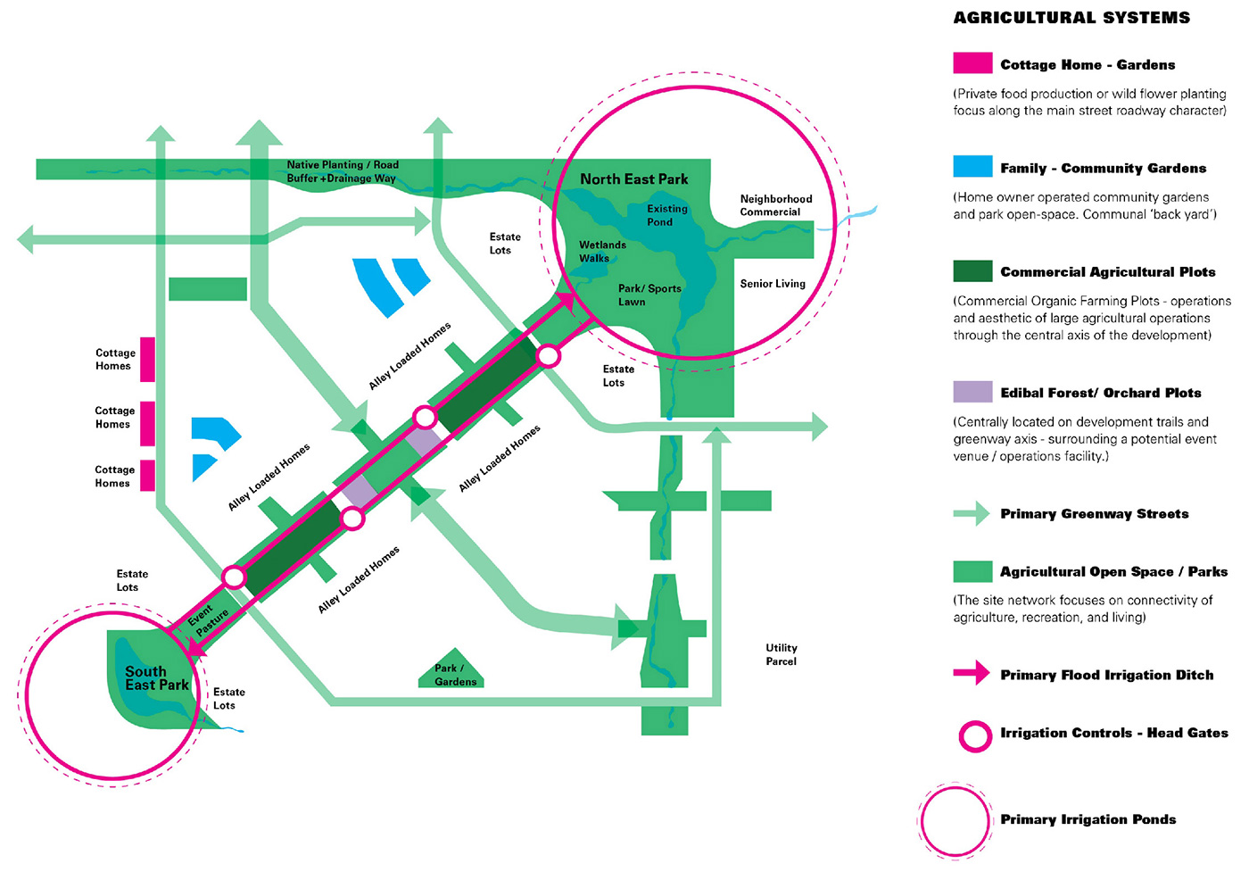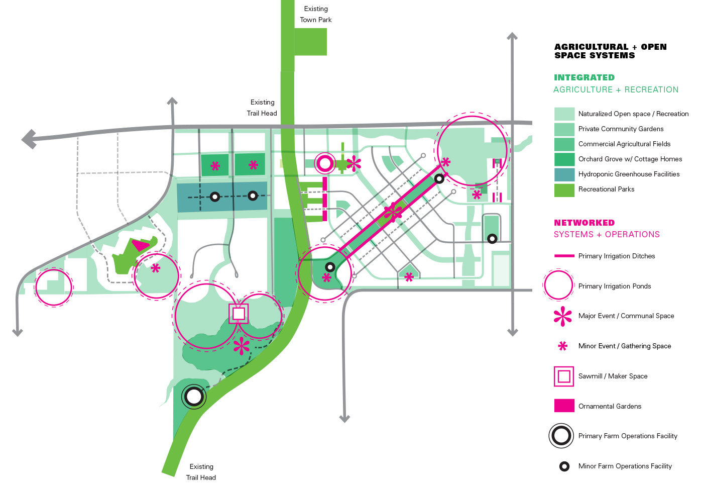 To help envision and plan this community of 1000 homes and a mixed-use town center, Steve hired Design Workshop to conceptualize and layout the agrihood. Working closely with several farmers, Design Workshop prepared a master plan that integrates multiple farm and flower plots and orchards that will be the open spaces and parks for the new community. Additionally, Steve has bought several old barns that will be used as community facilities and event spaces too.