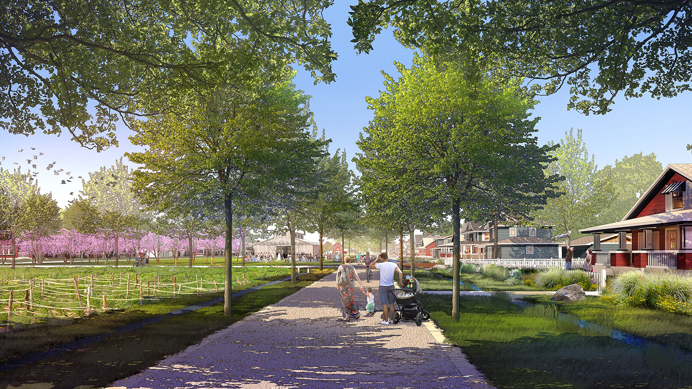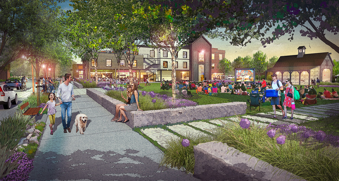 The first phase of development includes a town farm, community garden, some single-family homes and a 1900-era schoolhouse that is being refurbished as a craft brewery and a connection to the adjacent Great Western Trail, enabling access to 17 miles of regional trails in the area.