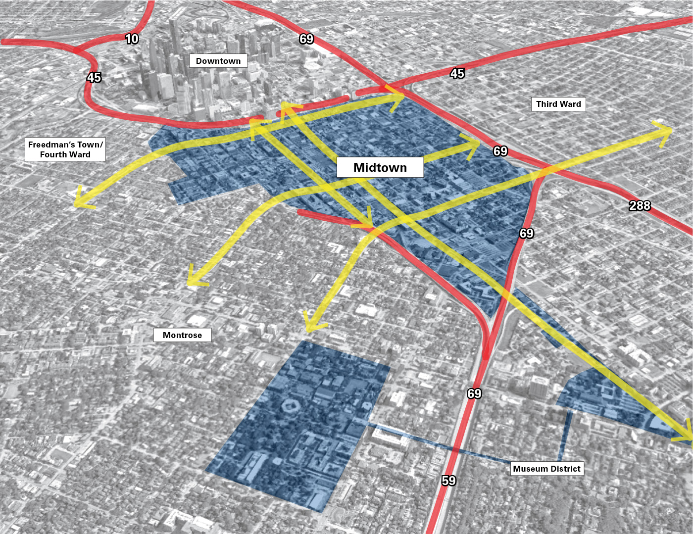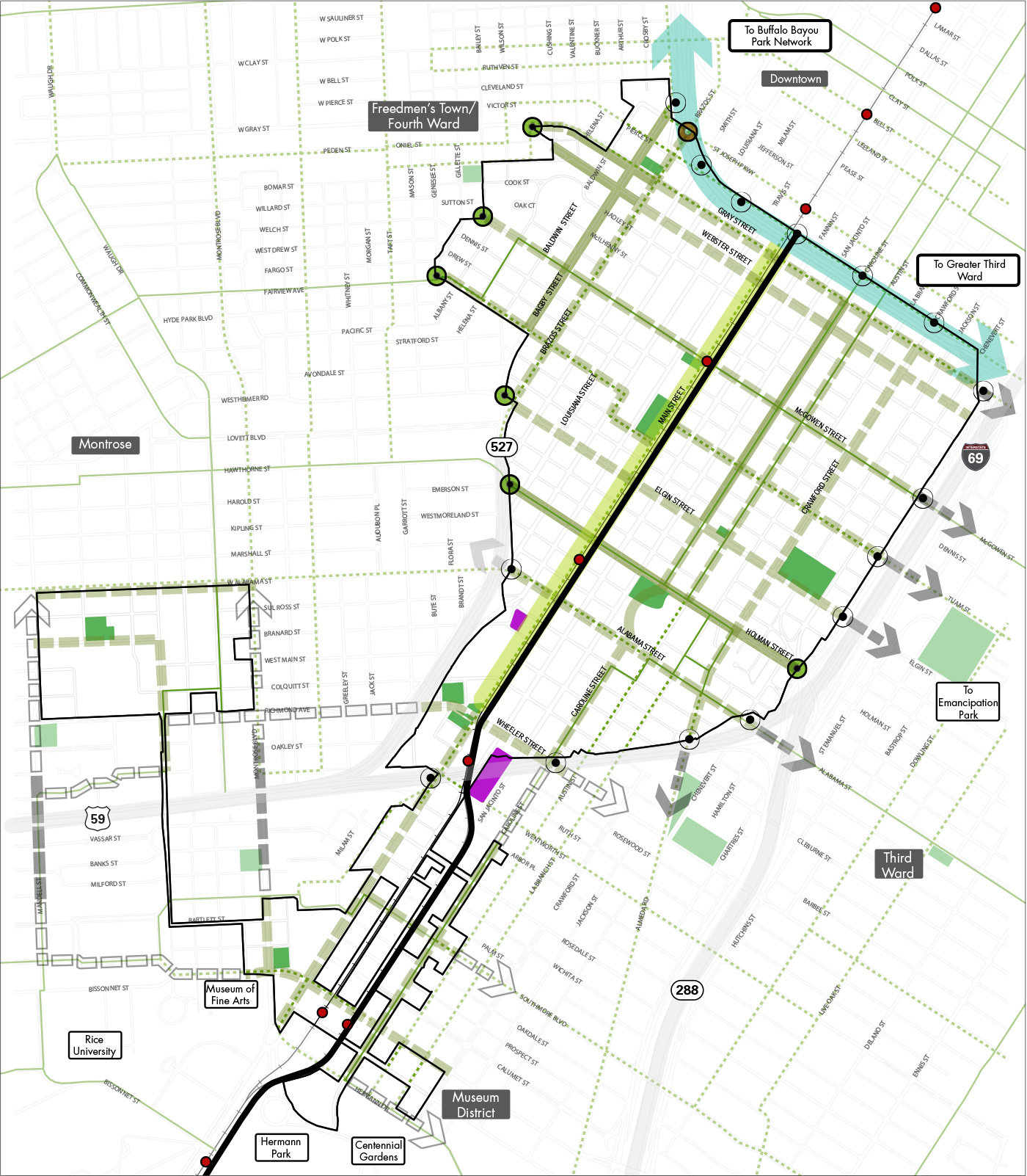 Houston’s Midtown district once suffered with an inhospitable urban environment and a lack of amenities beyond bars and large apartment buildings. As part of a larger renaissance in the City of Houston to reclaim and enliven vacant and public spaces to improve the quality of life for all its residents and businesses, a public-private partnership was formed to revitalize a 6-acre "superblock" in the Midtown district.