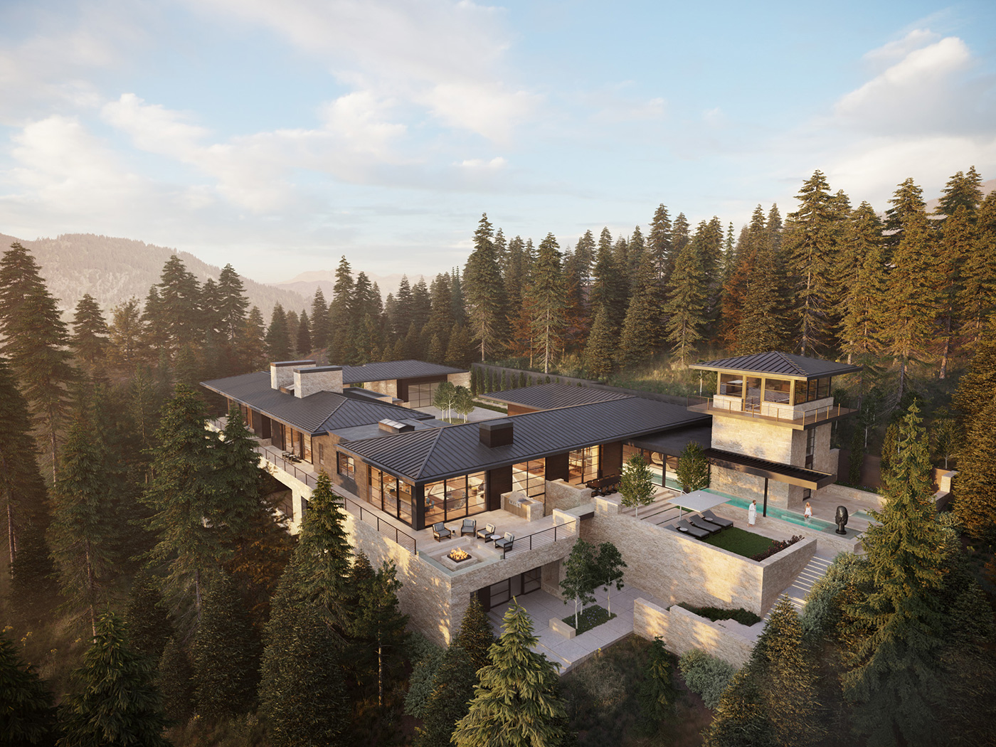 Perched high on a mountain slope in The Colony at White Pine Canyon, this extraordinary site allowed Design Workshop to leverage the panoramic views of its alpine setting. A guiding principle of the design was to accommodate the site’s steep natural hillside and preserve it mature coniferous and aspen forest, while also integrating a set of refined outdoor spaces that seamlessly extend and connect interior spaces with views and natural sunlight. Planning in collaboration with the architect, our design creatively leverages architectural and landscape features to retain the hillside into a series of functional spaces.