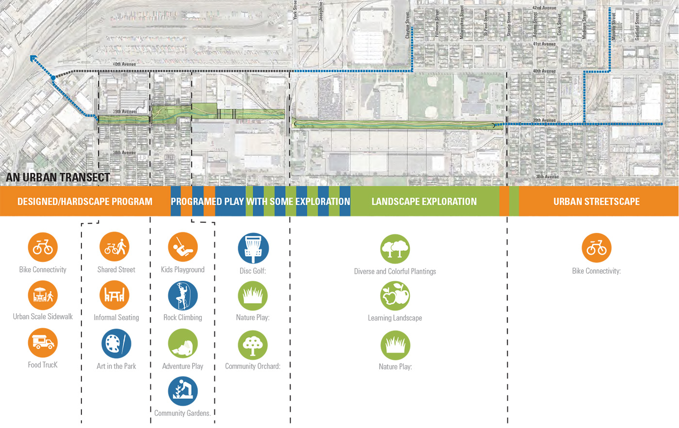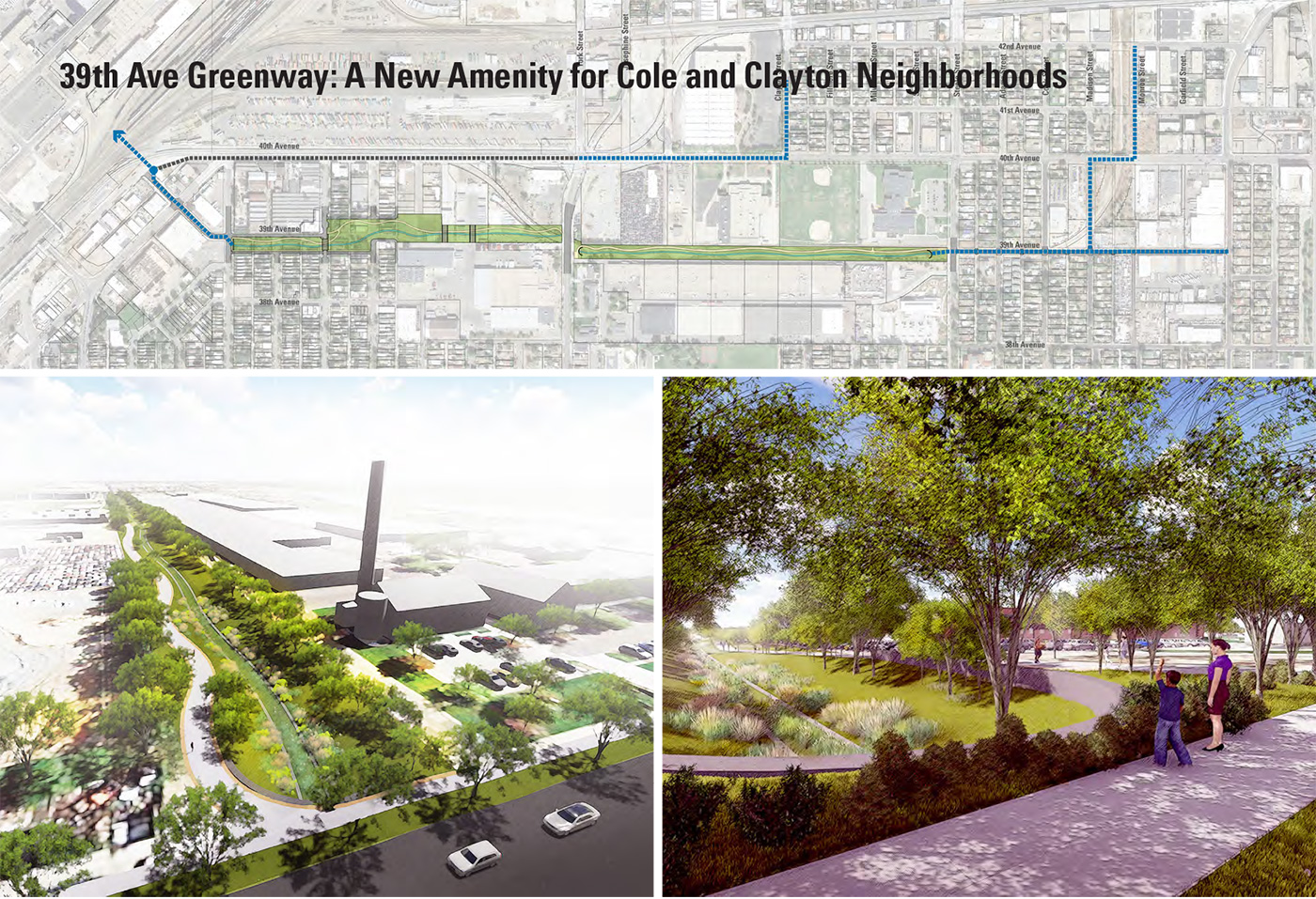 Over the last century, the neighborhoods of Northeast Denver have seen ever-increasing property damage and loss of green space due to regional development and antiquated infrastructure. The communities not only suffer from a lack of public open spaces and disconnected stormwater facilities, but homes and businesses also regularly flood. This flooding happens due to a perfect storm of shortsighted development and circumstance that resulted in two urban neighborhoods being built within an historic drainageway without being provided the necessary infrastructure to redirect the historic seasonal flows. The Platte to Park Hill project rights this wrong and brings new recreational and mobility infrastructure to two underserved communities.