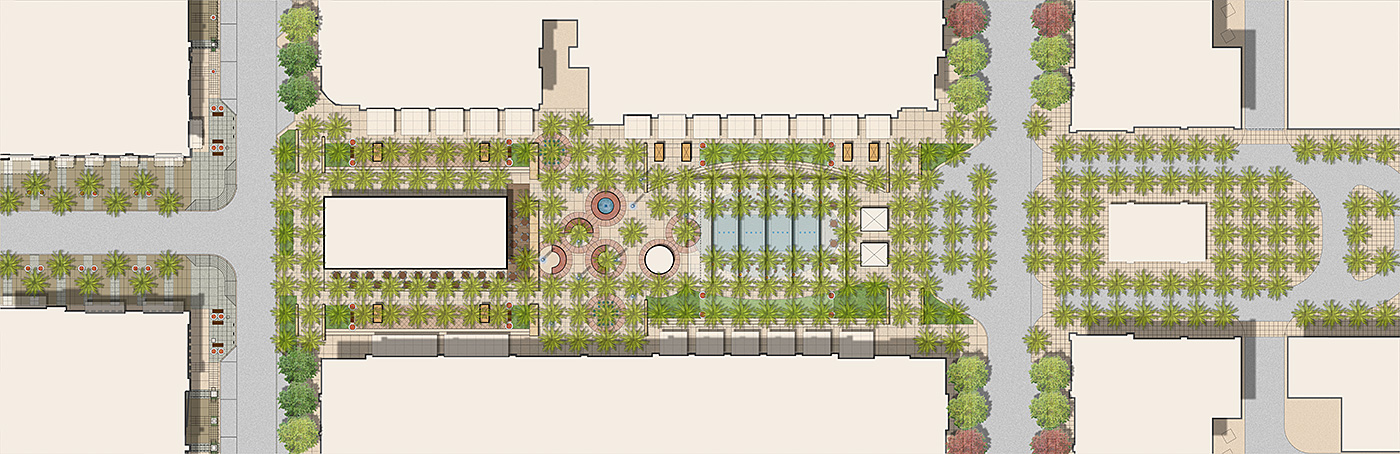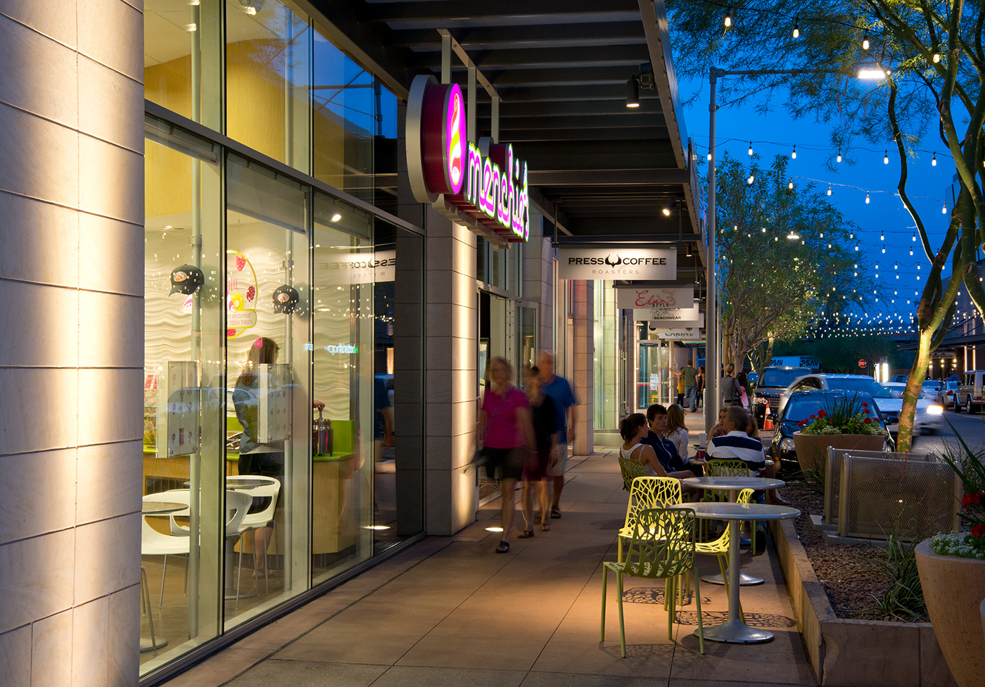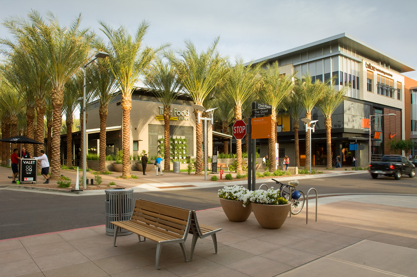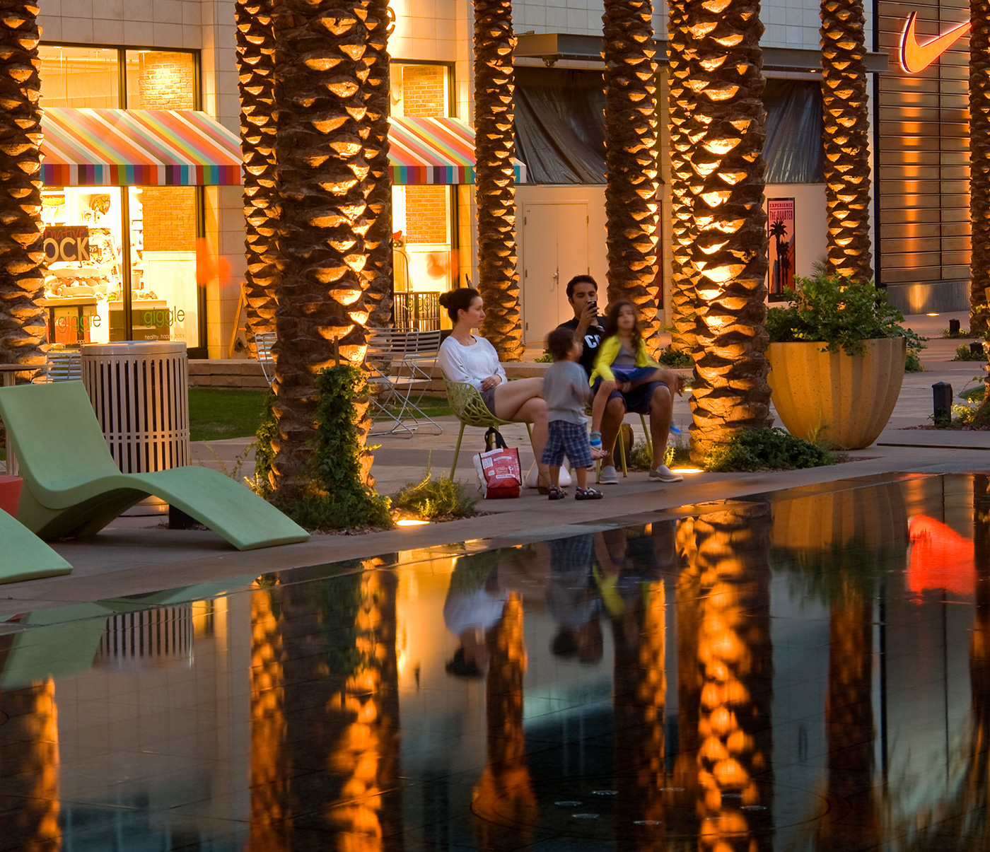 The Quad is the centerpiece of Scottsdale Quarter, a 28-acre mixed-use development, that has become the public space for the city. At 125’ wide and nearly 400’ long, this space is defined by the continuous palm grove that has an interactive water feature, outdoor dining, lawn areas and public art underneath this soft green shaded roof. It’s become the place for experiences, ranging from watching children frolic in the water feature to large catered events for corporate events. It’s become the place where experiences are made.