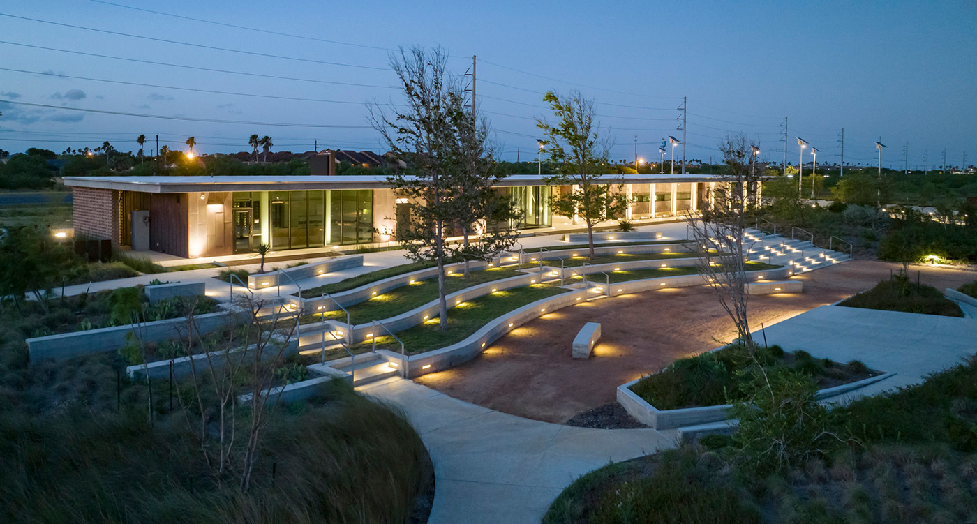 We collaborated with a multidisciplinary team to plan, design, and implement the South Texas Ecotourism Center as a hub for ecotourism in the Rio Grande Valley. Designed with a focus on sustainability, the visitor center is integrated into the 10-acre site amongst a moat, weirs, aqueduct-like “arroyito”, and a modified natural river cutoff aimed at capturing and recycling stormwater. Residents walk among loma hills, lagoons, and distinct landscapes that provide critical habitat to many migratory and resident wildlife species. At the pinnacle of the experience, sits a boardwalk that rises 30 feet above the landscape and provides sweeping views of the wetlands and coastal prairies.